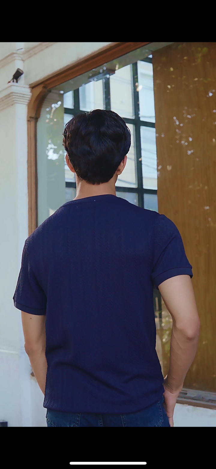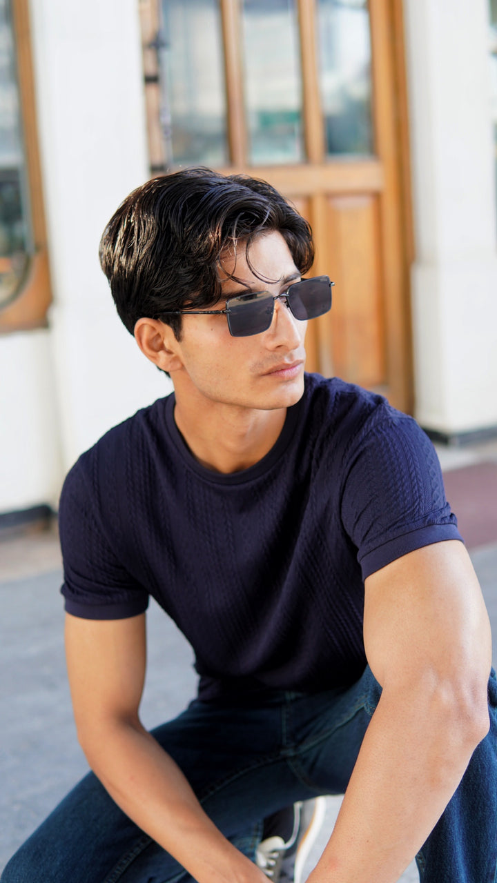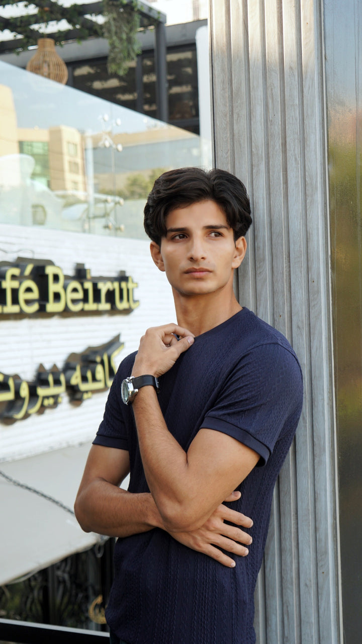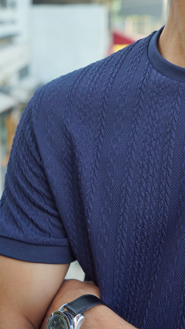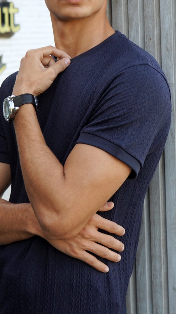 Men’s Textured Round Neck T-shirt - Navy Blue